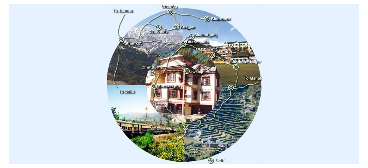 A: PALAMPUR – JOGINDER NAGAR – DHARAMSALA – MCLEODGANJ – JAWALAJI – HAMIRPUR – CHINTPURNI